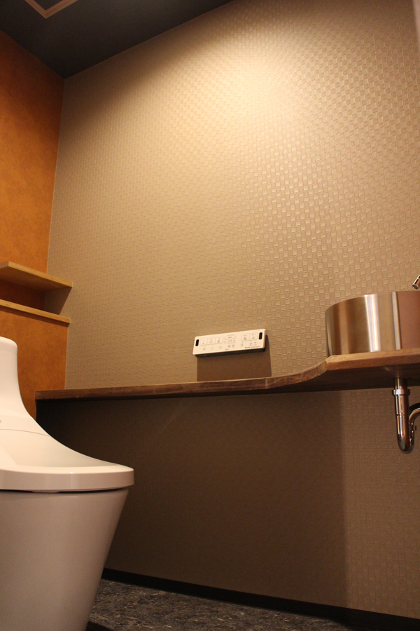 トイレはブラウンを基調に、手洗いボールのシルバーがアクセントとなった高級感溢れる空間です。