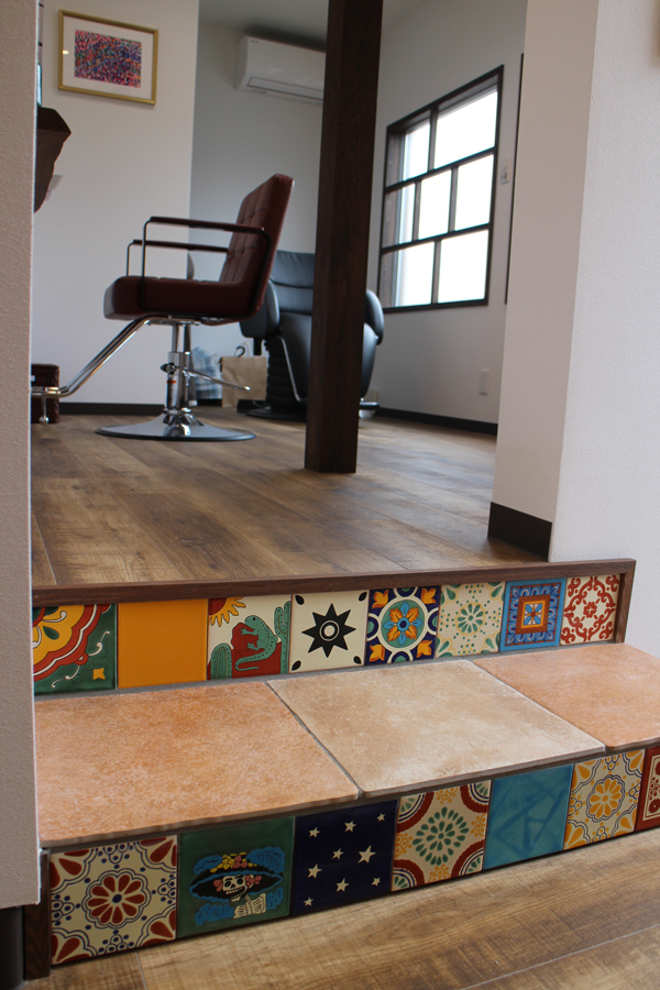 蹴込み部分には異国情緒溢れるカラフルなタイルを使用しました。