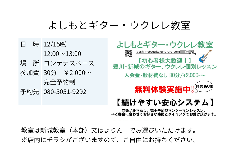 開催予定の教室等の内容です。お問合せ、ご予約はお気軽にどうぞ。