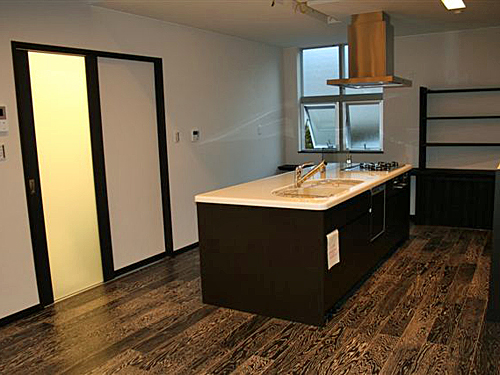 LDKもモノトーンで、上品な色の無垢の床材を使用しています。家族みんなでゆったりとした時間を過ごすことができますね。